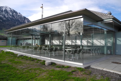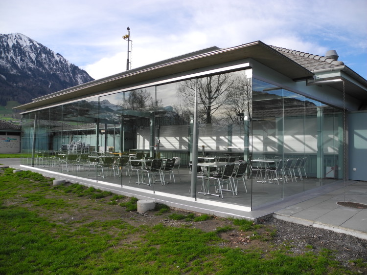 Schützenmatt Buochs, Falt-Schiebe-Windschutzverglasung, ab Geländer
