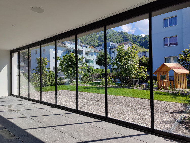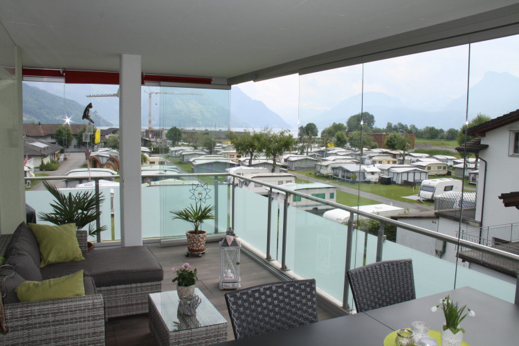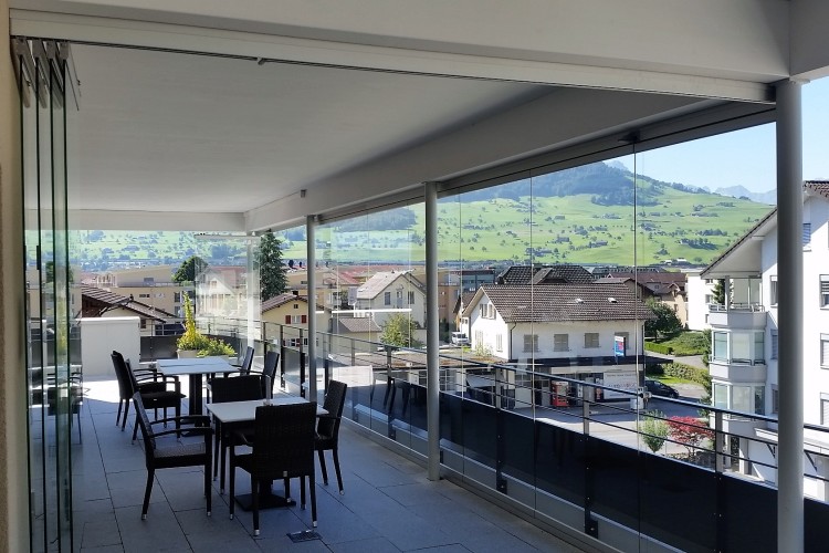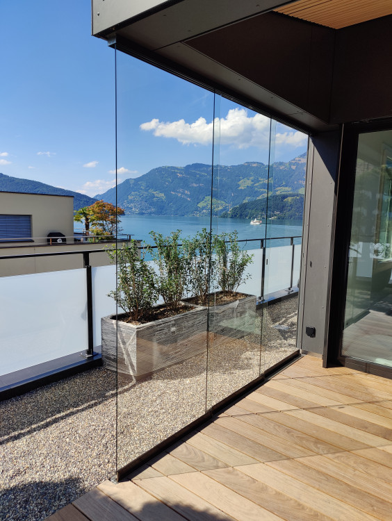 am Bach Ennetbürgen, Falt-Schiebe-Windschutzverglasung
