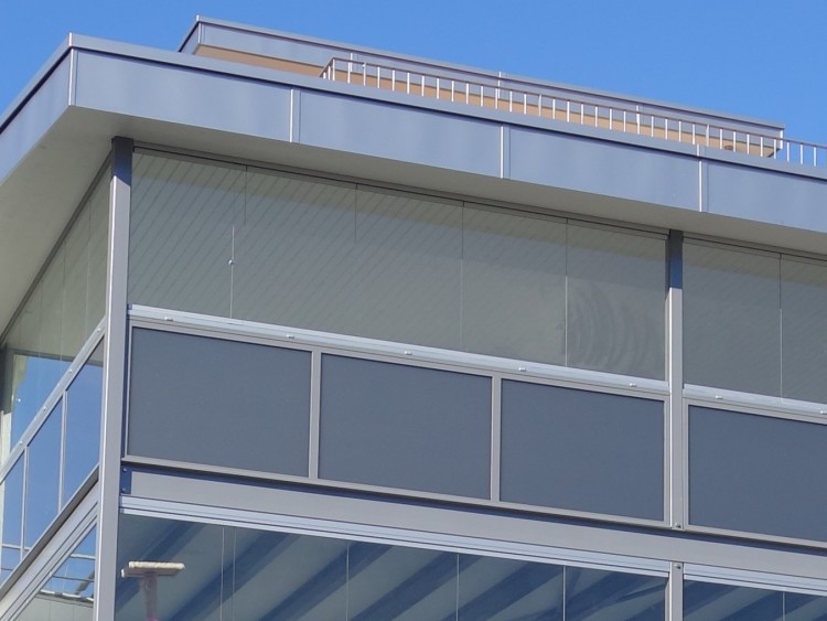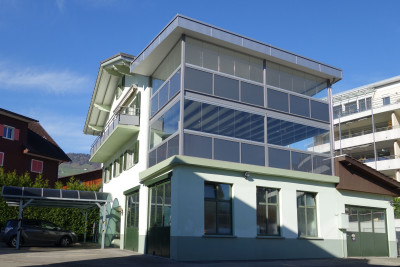 Nähseydi Buochs, Falt-Schiebe-Windschutzverglasung, geschosshoch